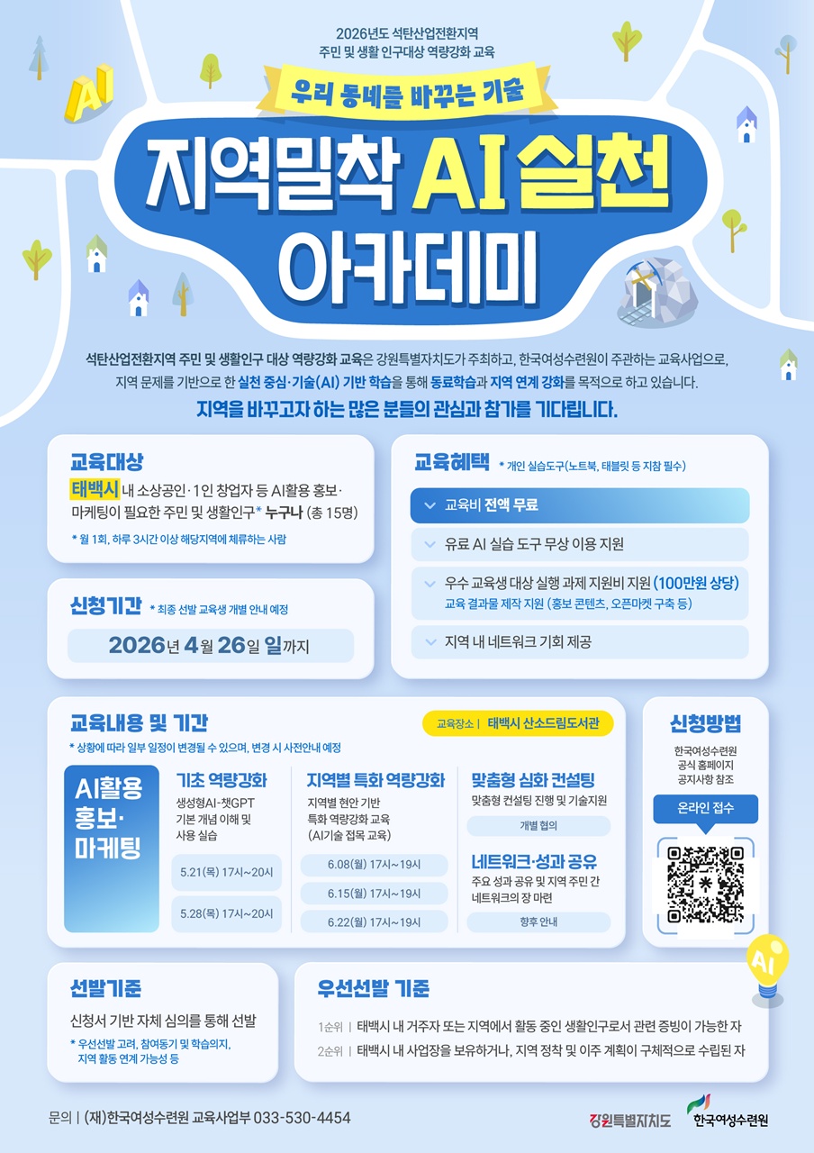 강원특별자치도 '2026 석탄산업전환지역 주민 및 생활인구 대상 역량강화 교육'