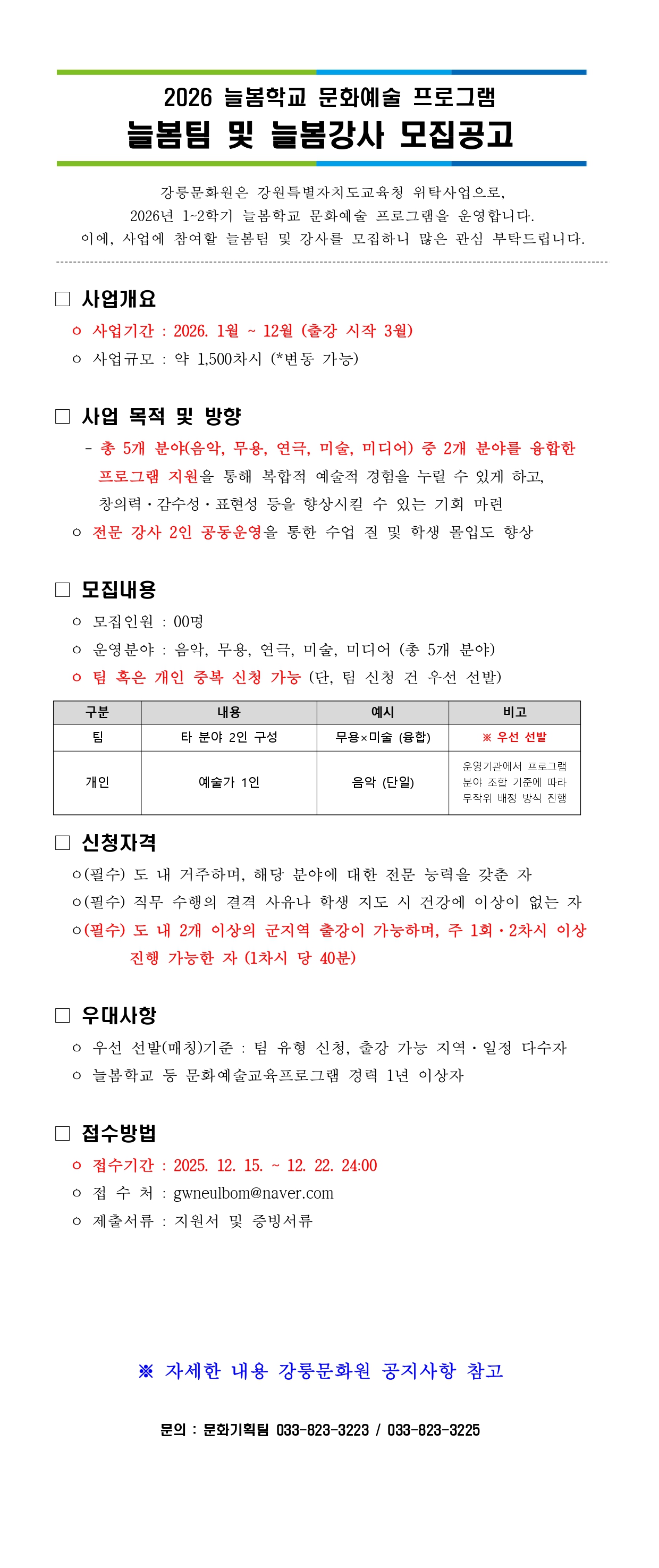 [2026 늘봄학교 문화예술 프로그램] 늘봄팀 및 늘봄강사 모집공고