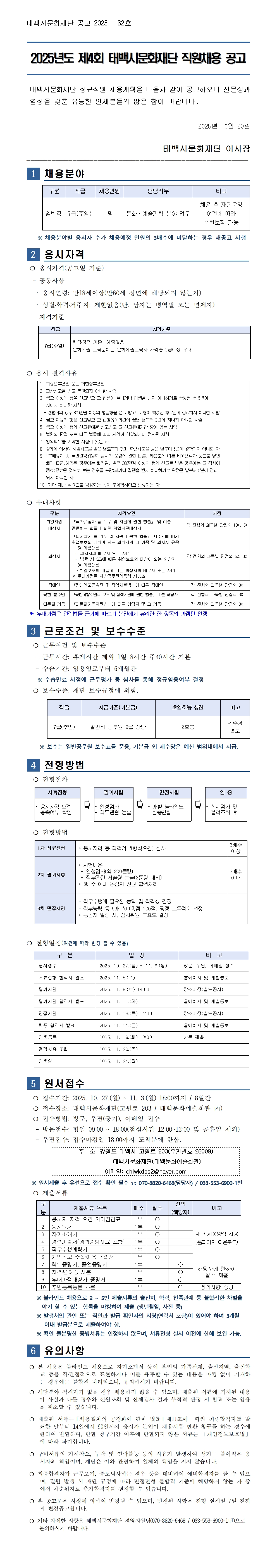 2025년도 제4회 태백시문화재단 직원채용 공고