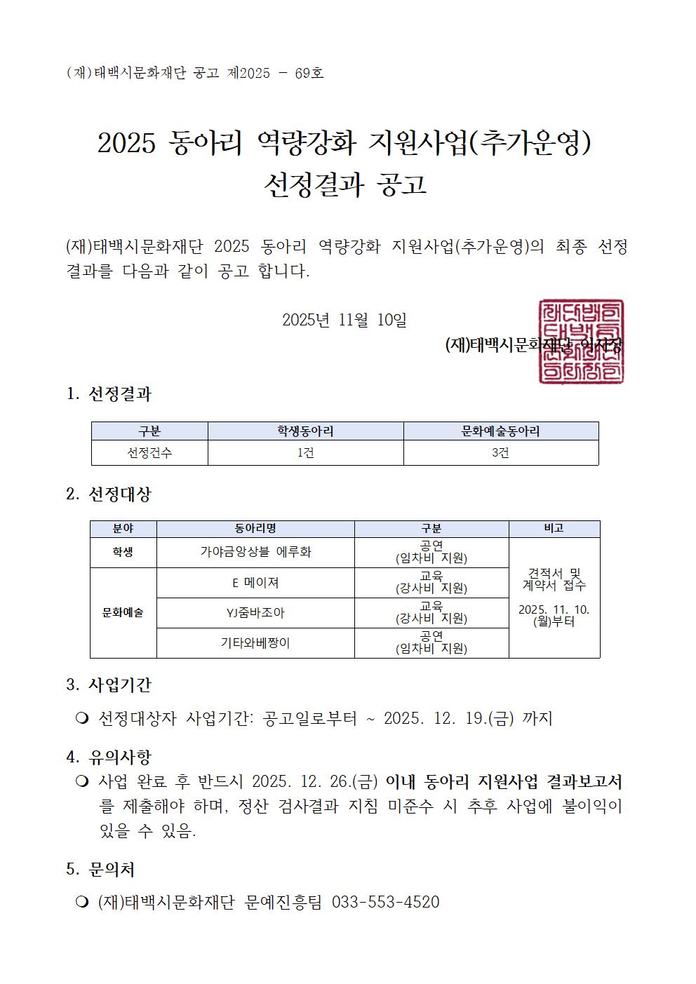 2025 동아리 역량강화 지원사업(추가운영) 선정결과 공고