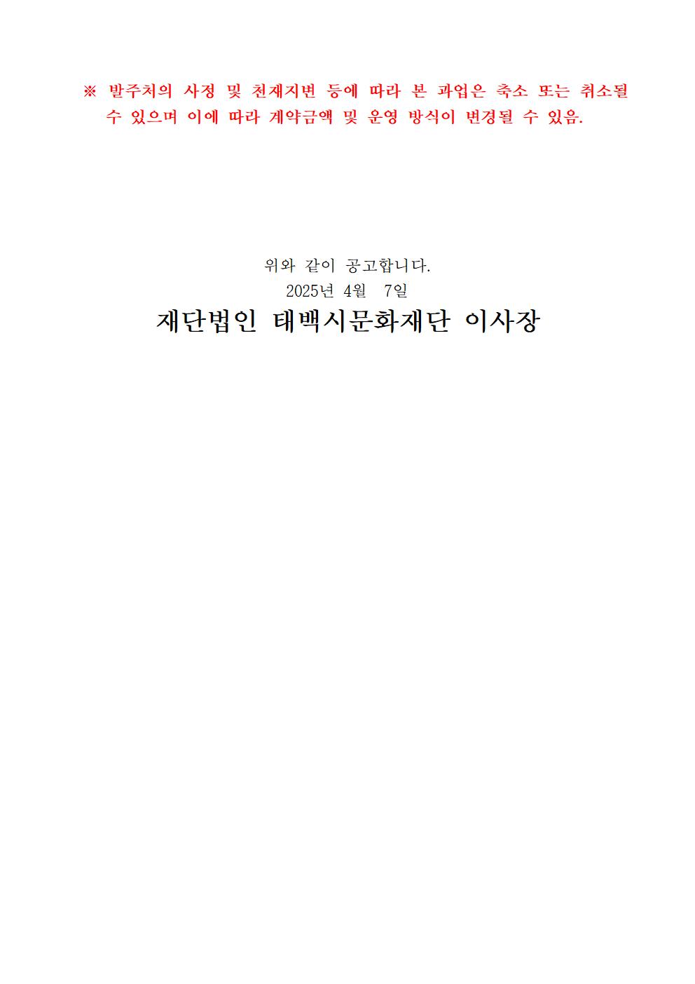 2025년도 제 1회 태백시문화재단 직원채용 최종합격자 발표 및 임용등록 공고