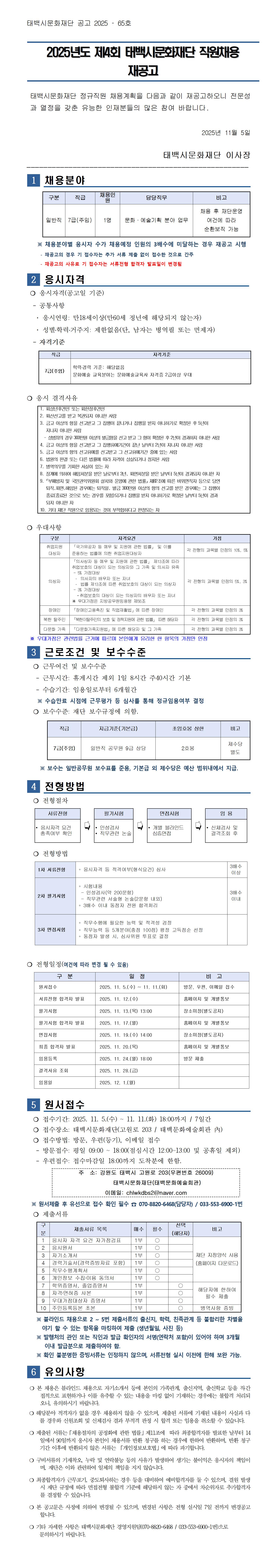 공고문(2025년도 제4회 태백시문화재단 직원채용).hwp