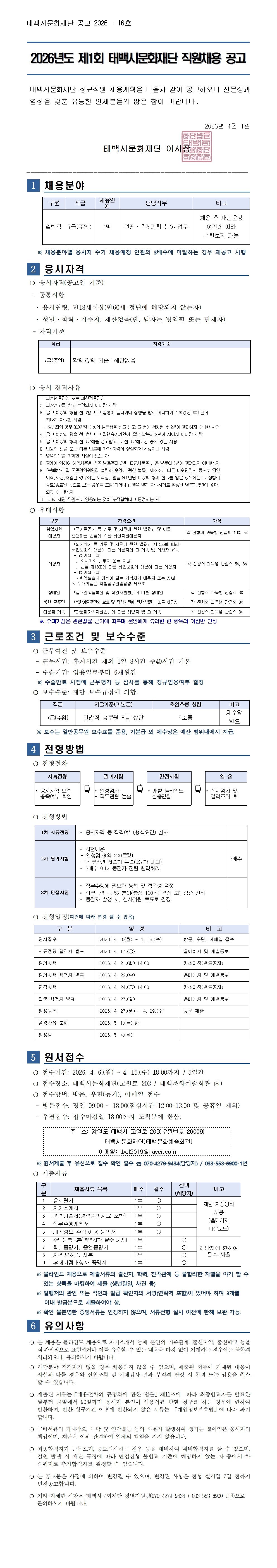 2026년도 제1회 태백시문화재단 직원채용 공고