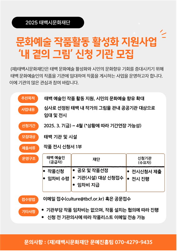 태백 예술인의 작품을 기관에서 만나자! -태백시 예술인 작품전시 지원 참여기관 모집-
